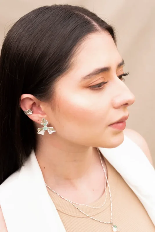 Nuestras piezas no solo adornan: expresan. Son el resultado de un proceso artístico y manual, donde cada piedra, cada hilo y cada metal reciclado cobra vida en una joya irrepetible. Diseñadas para mujeres auténticas que desean llevar consigo una obra de arte.