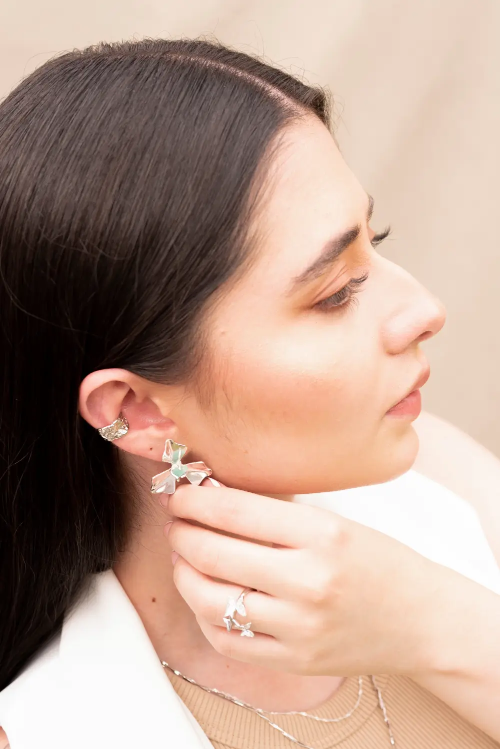 Topo flor en plata ley 950. Piedra: Murralla de esmeralda